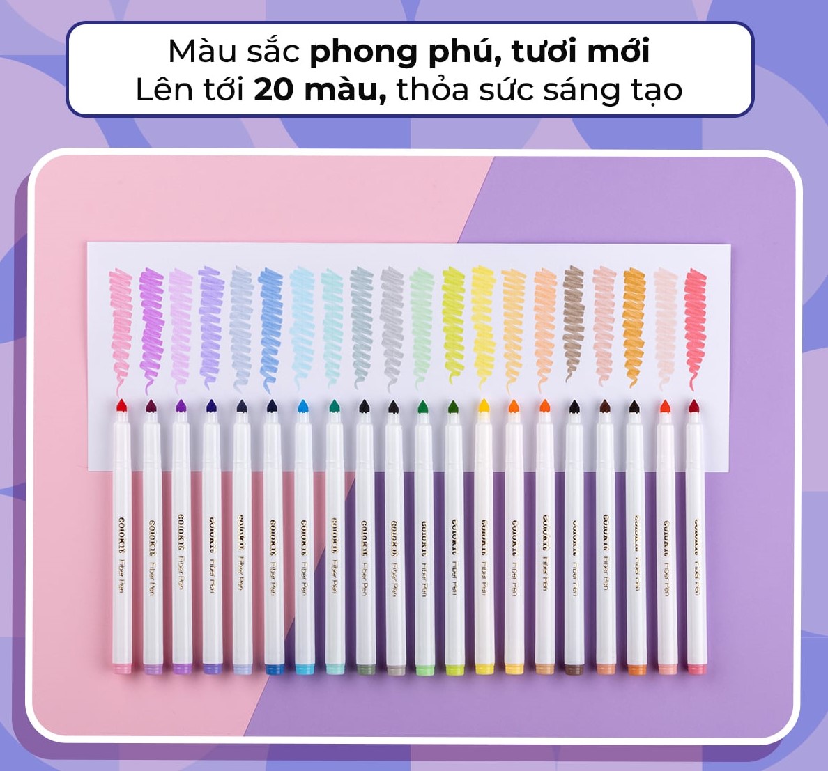 Dòng sản phẩm Fiber Pen Pastel 20 màu cũng là một trong những bộ màu "trendy" nhất của Thiên Long. Pastel là "người anh em" song hành cùng bộ Retro, nhưng mang một phong cách đối lập: ngọt ngào, dịu mắt và trẻ trung. Đây là bộ bút màu "best-seller" dành cho những ai yêu thích sự nhẹ nhàng và tinh tế.