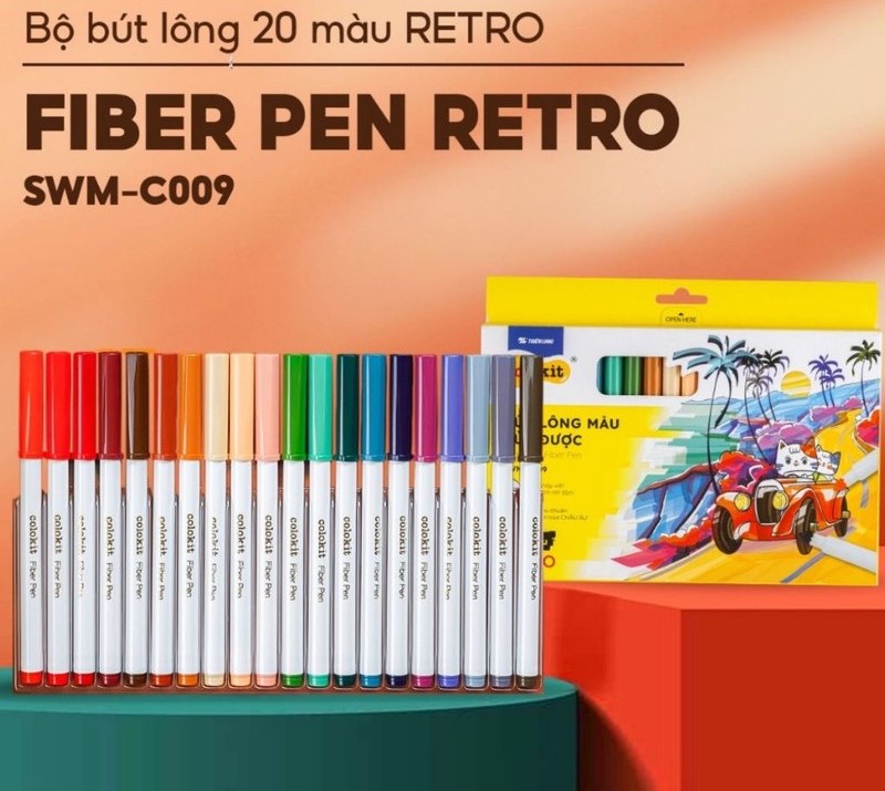 Dòng sản phẩm Fiber Pen Retro 20 màu là một trong những bộ màu "trendy" nhất của Thiên Long trong những năm gần đây. Khác với các tông màu rực rỡ truyền thống, bộ màu này hướng tới phong cách cổ điển, nhẹ nhàng và đầy tính nghệ thuật.