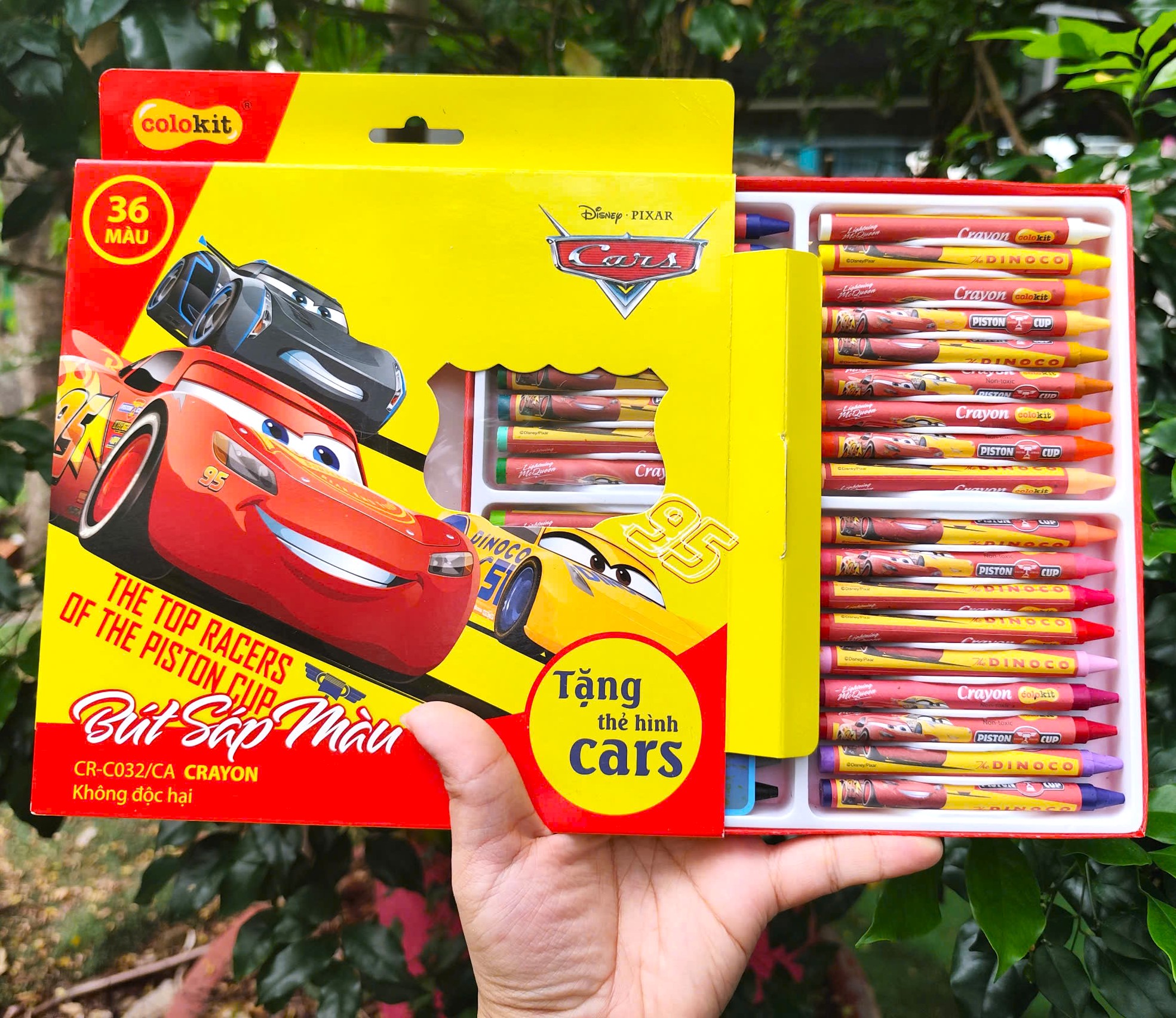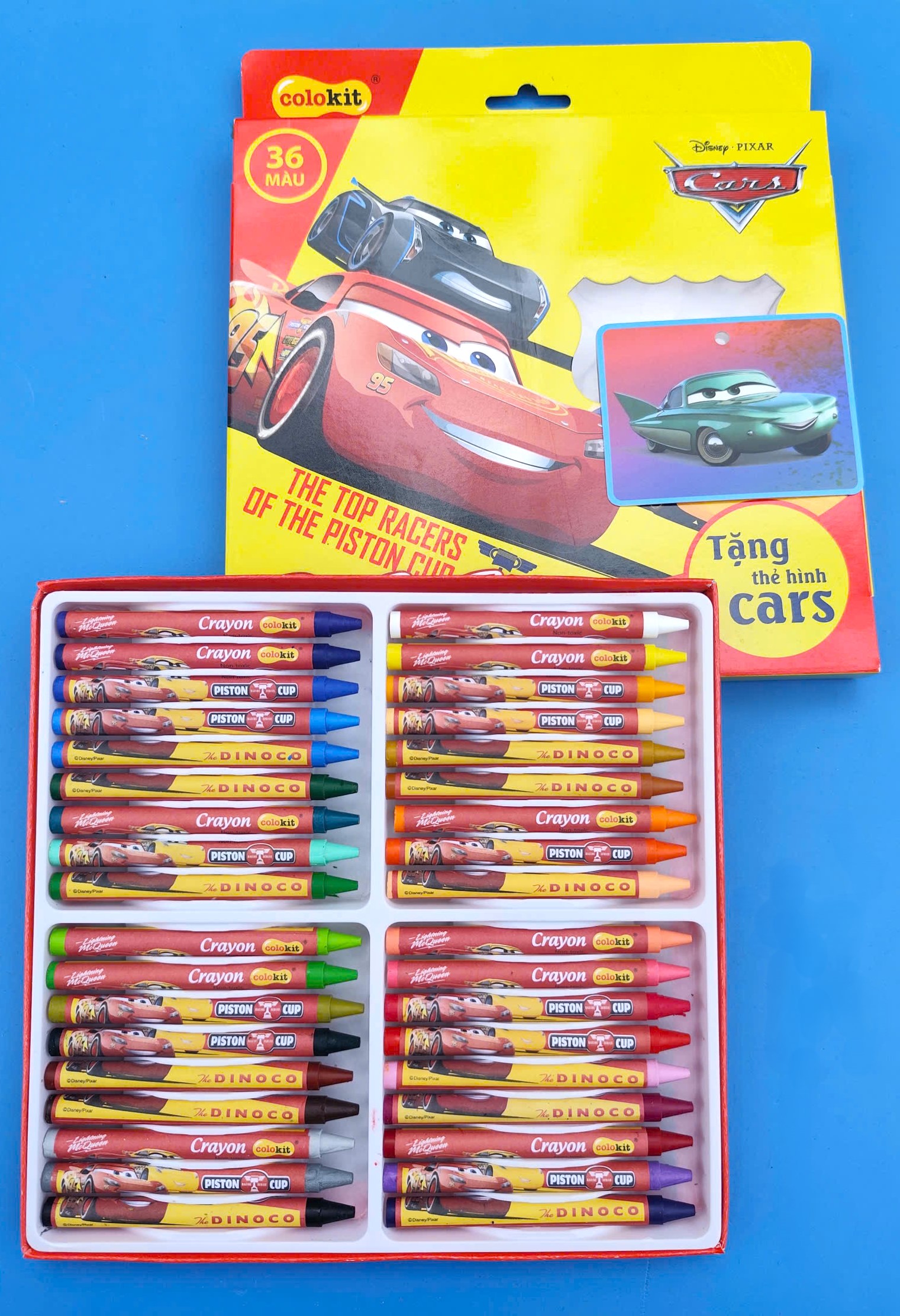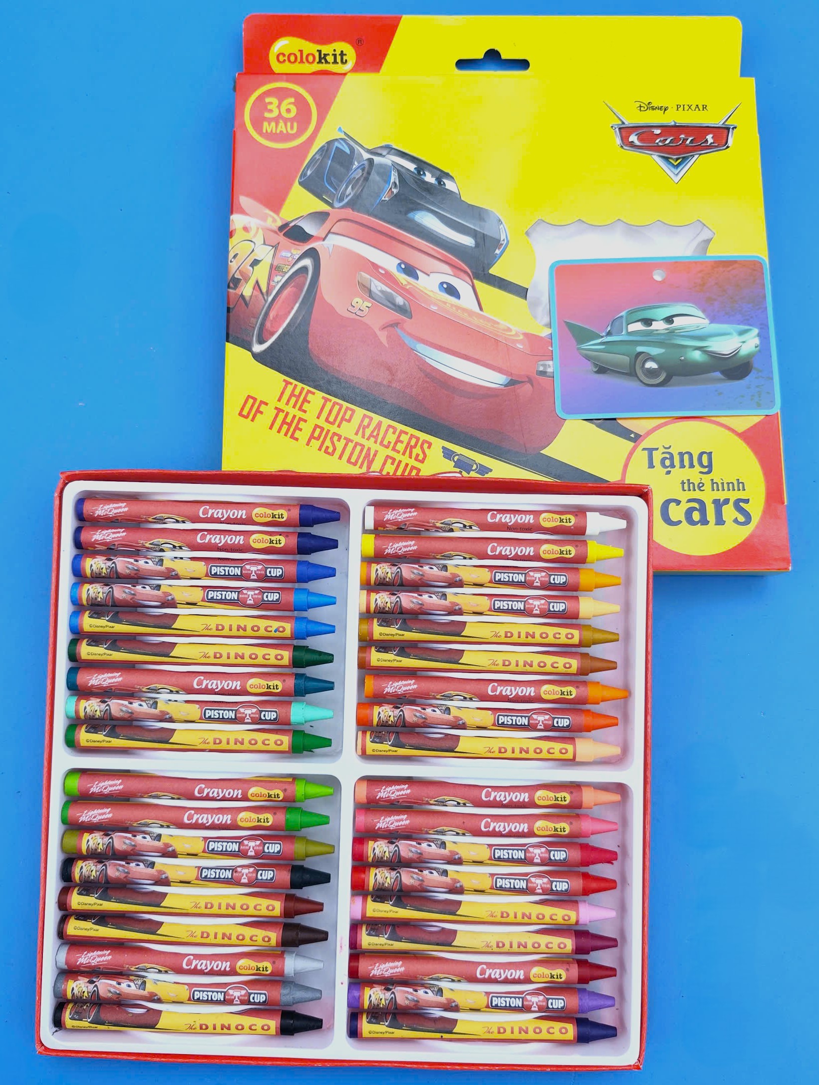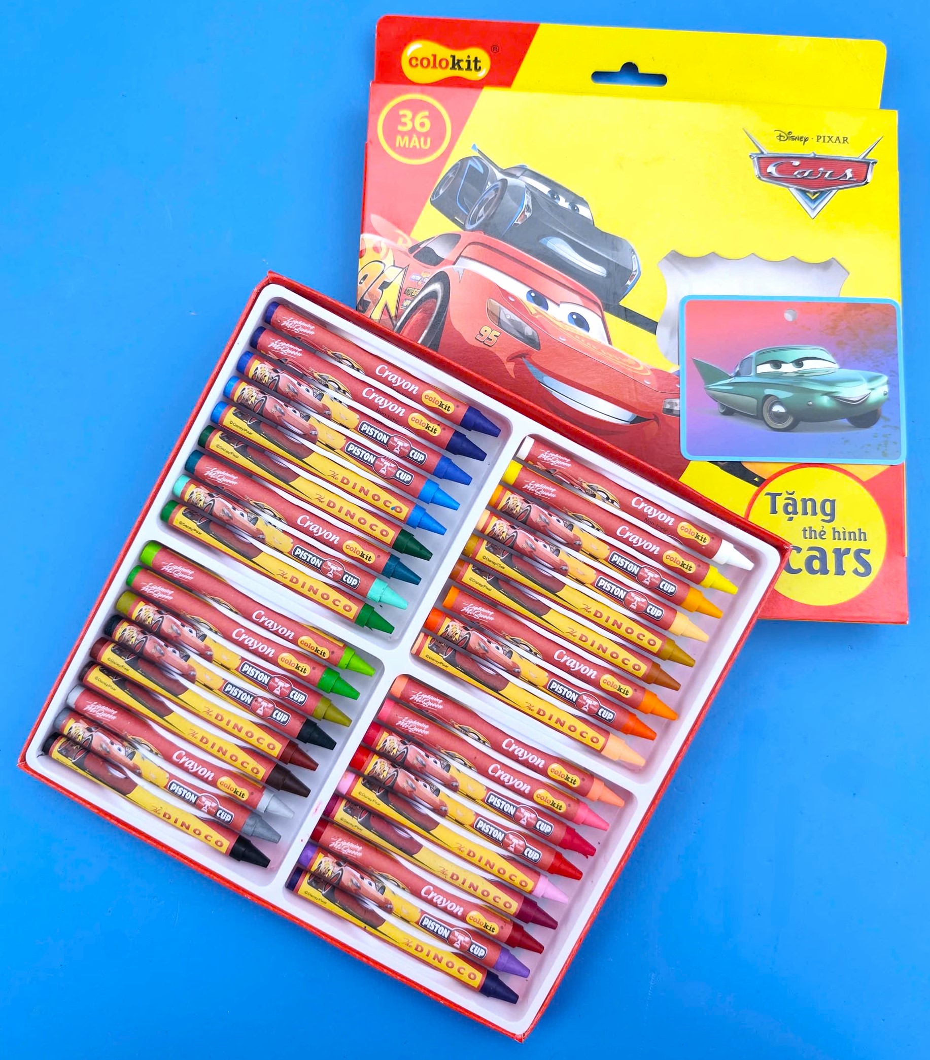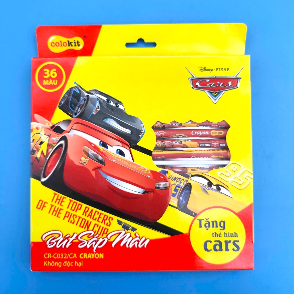 Bút sáp 36 màu hộp giấy hình Cars Lightning McQueen thuộc chuỗi sản phẩm Colokit Thiên long