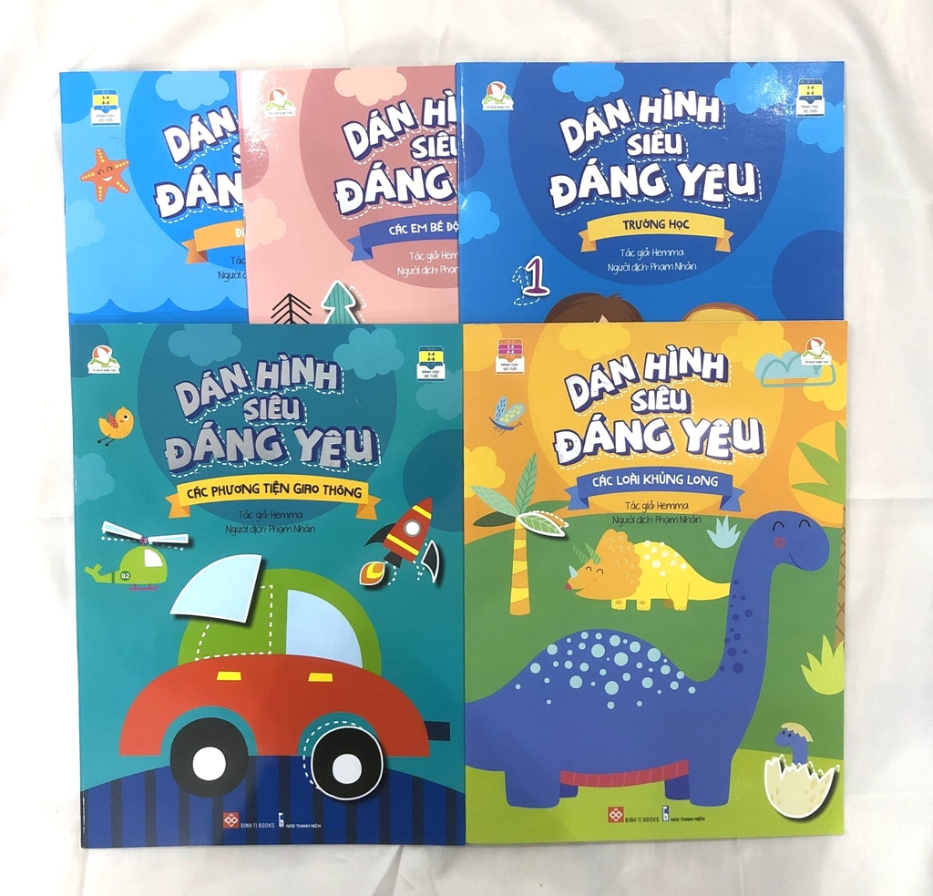 Combo 5 cuốn dán hình siêu đáng yêu: Trường học - Em bé động vật - Đại dương - Khủng long - Phương tiện GT
