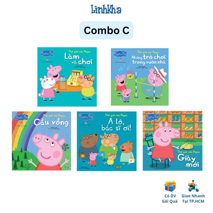 Combo C 5 cuốn Thế giới của Peppa - A lô bác sĩ ơi, Làm và chơi, Cầu vồng, Giày mới, trò chơi trong vườn - Kim Đồng