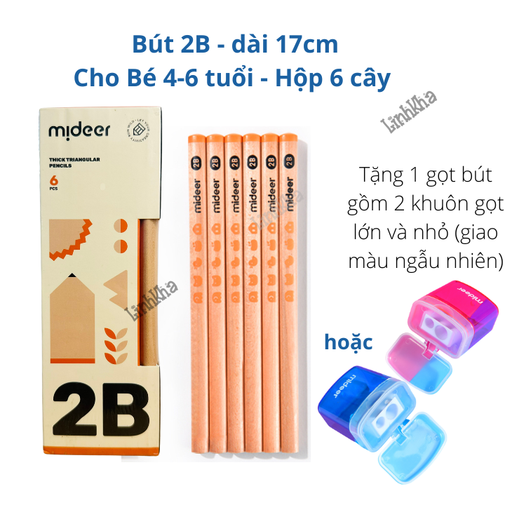 + Bút chì 2B phù hợp cho bé 4-6 tuổi (dài 17 cm) : Chì cứng, phù hợp cho các bé tập viết chữ, trước và sau tiểu học
