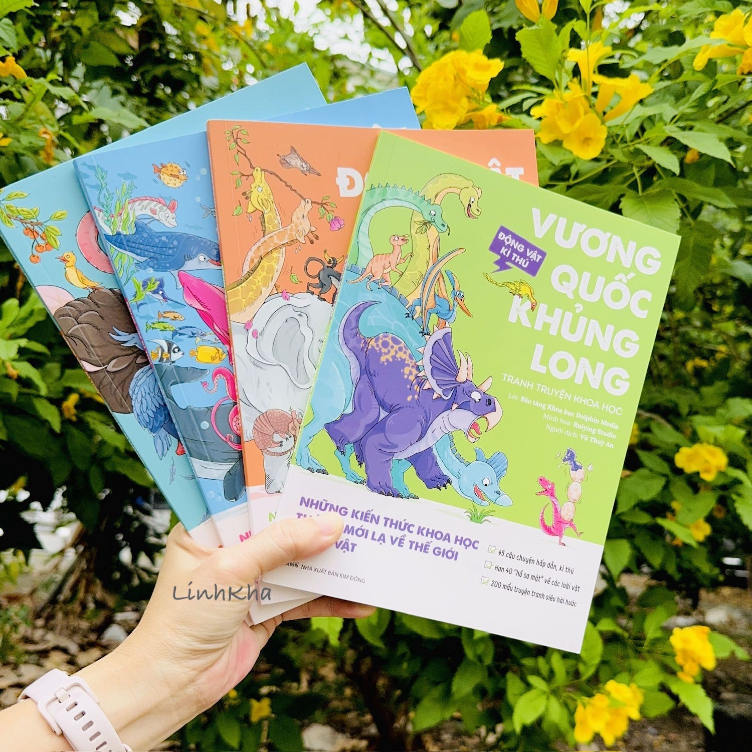 Combo trọn bộ 4 cuốn Động vật kì thú: Chim muông - ĐV sống dưới nước - ĐC có vú - Khủng Long (KimĐồng)