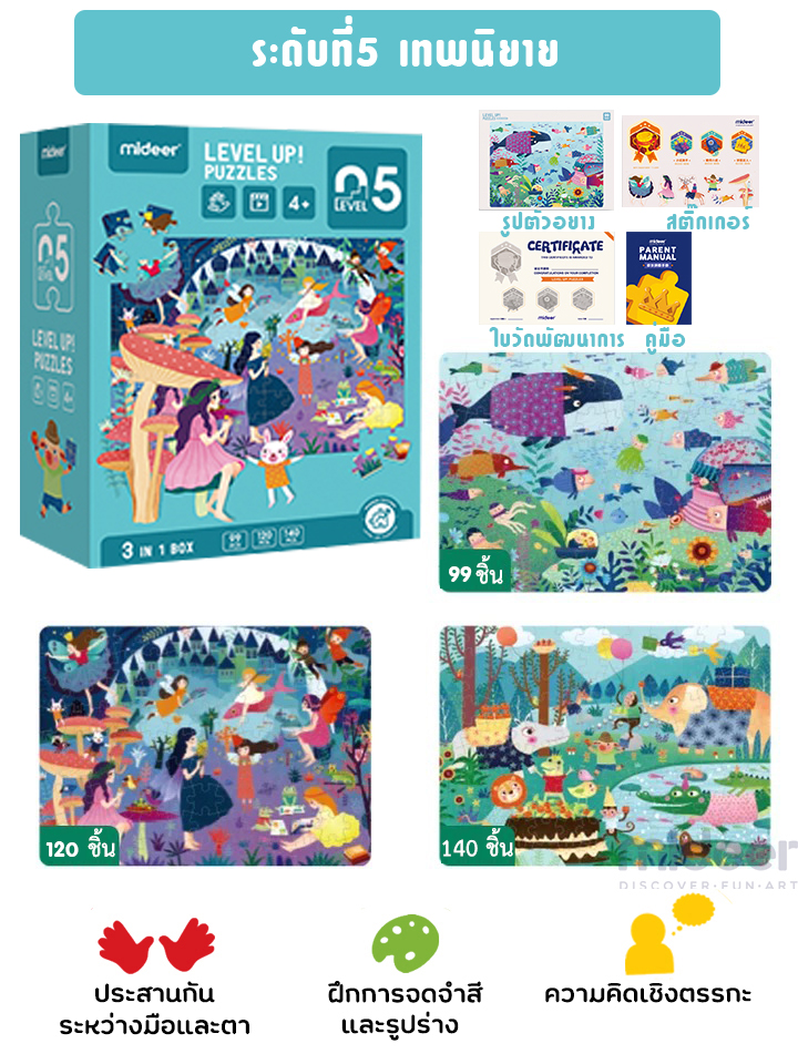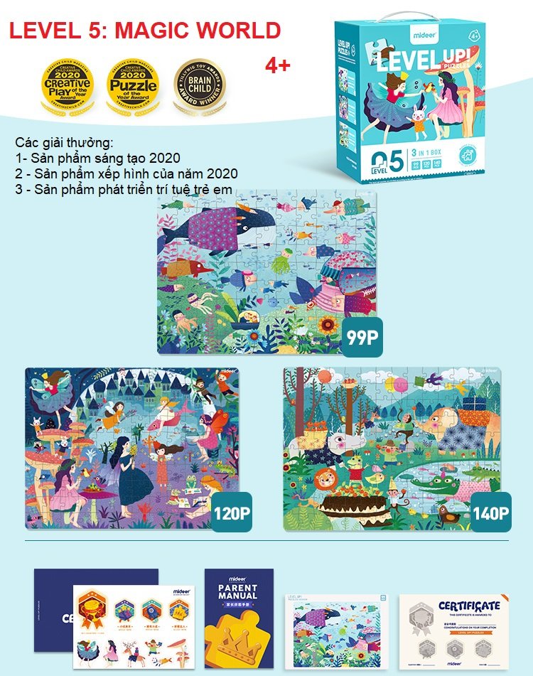 Bộ xếp hình này ở Cấp độ 5 trong 7 cấp độ, phù hợp với các bé từ 5 tuổi. Một bộ bao gồm: