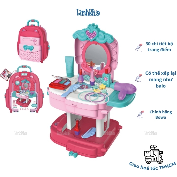 ?? Đồ chơi trang điểm cho bé gái sắm vai cô gái điệu đà - Hàng chính hãng Bowa 8255P - 30 chi tiết