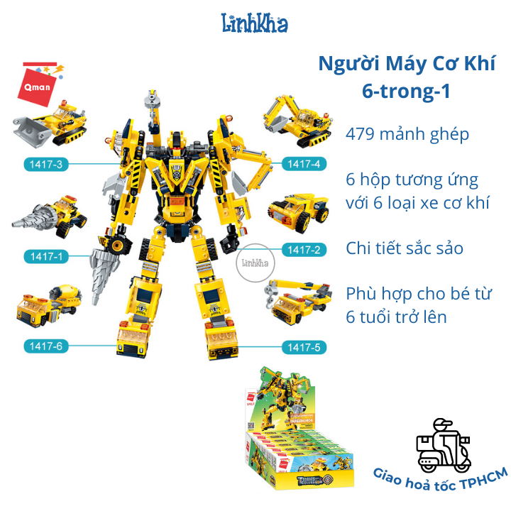 ?? Bộ Đồ chơi xếp hình cho bé trên 6 tuổi 479 chi tiết chủ đề Người Máy Kỹ Thuật - Qman 1417: