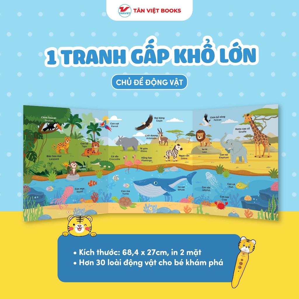 • 1 tranh gấp động vật khổ lớn (68,4 × 27cm, in 2 mặt)