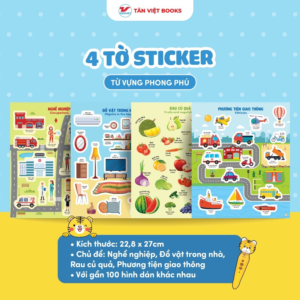 • 4 tờ sticker tương tác – nghề nghiệp, đồ vật, rau củ, phương tiện