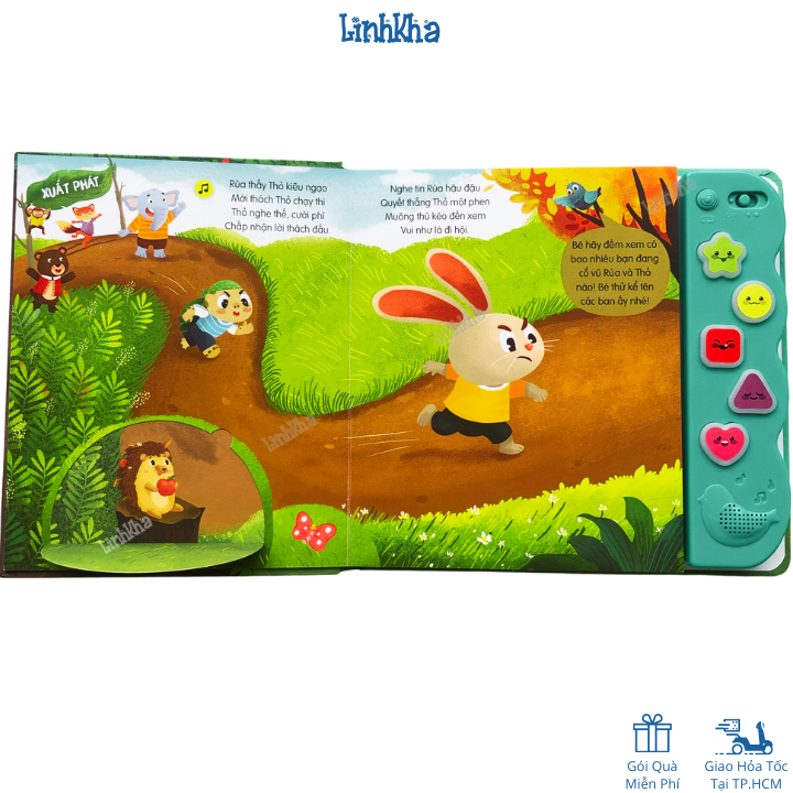 - Tác động toàn diện tới 4 giác quan quan trọng nhất của trẻ: thính giác (âm thanh), cảm giác (câu chuyện), xúc giác (nút bấm âm thanh, lật mở), thị giác (hình ảnh).