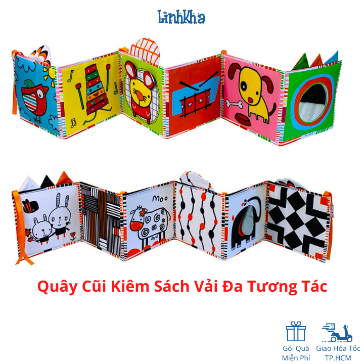 - Như 1 sách vải tương tác với các tương tác lật mở, ú òa âm thanh lục lạc thú vị