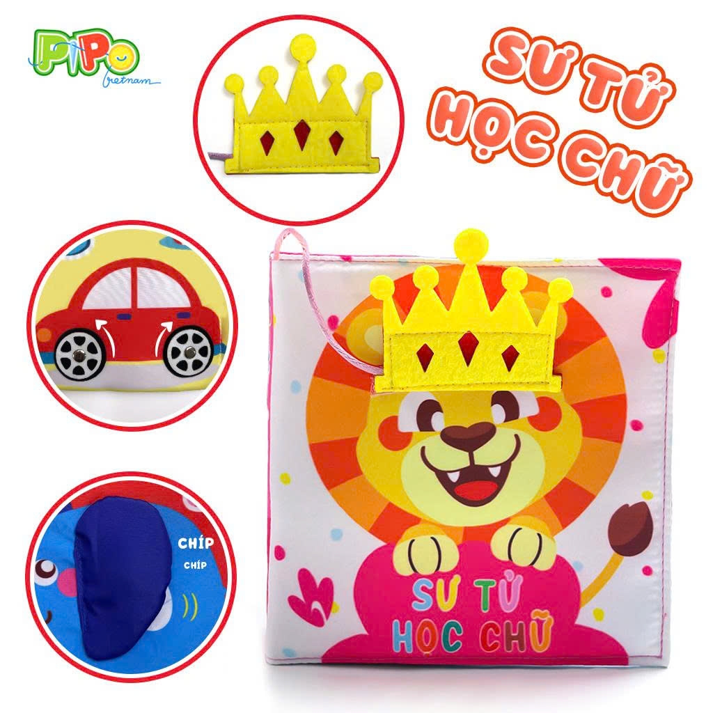 Sách vải Sư tử học chữ - có chi tiết tương tác, an toàn dễ giặt vệ sinh cho bé - size cơ bản 15x15 - pipovietnam