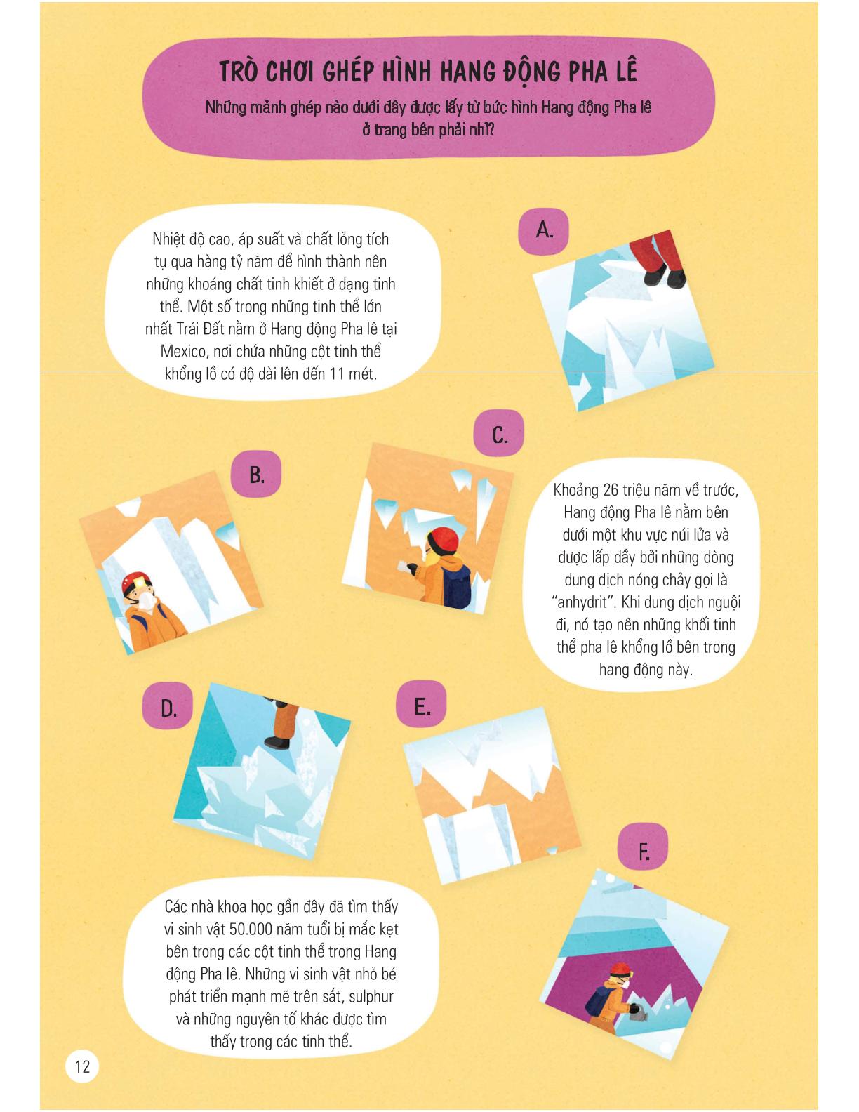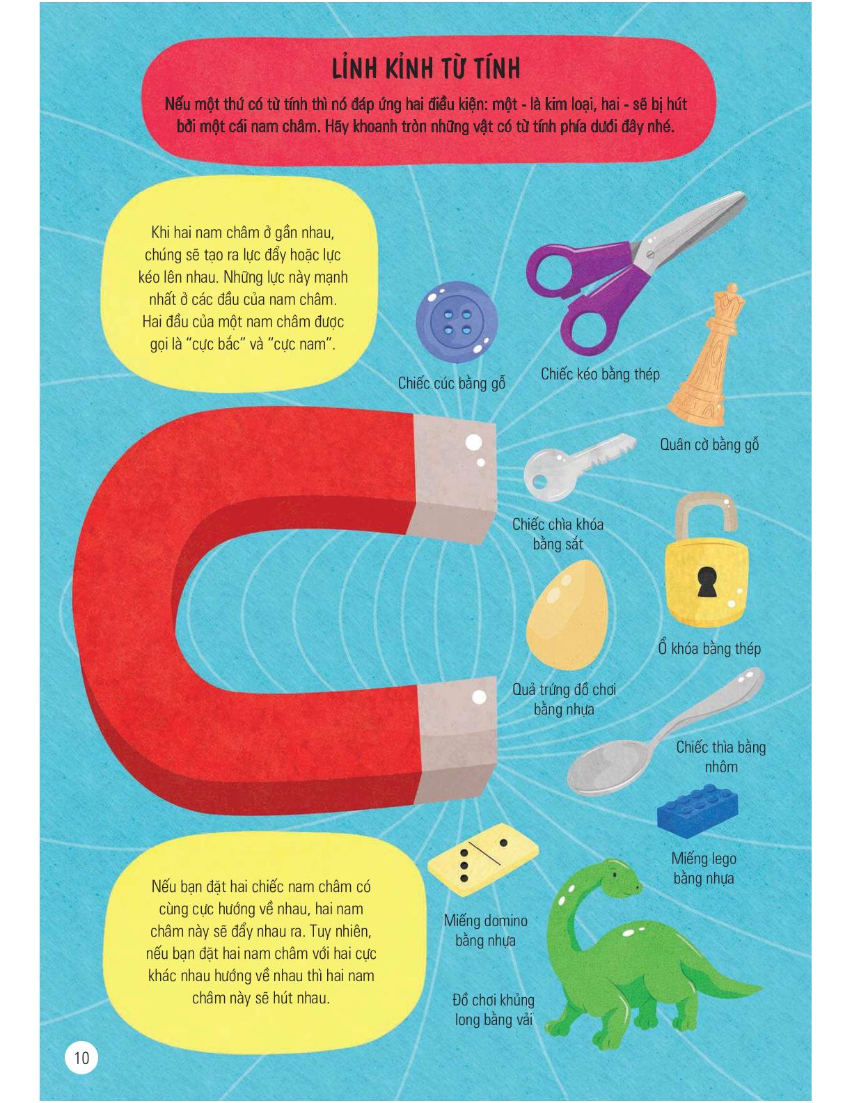 Cuốn sách mới mẻ này bao gồm những trò chơi thí nghiệm, mê cung điện năng, tìm điểm khác nhau… Ngoài ra, mỗi câu đố trong cuốn sách lại giúp các em khám phá một chủ đề khoa học đặc sắc và rất nhiều thông tin đáng kinh ngạc.