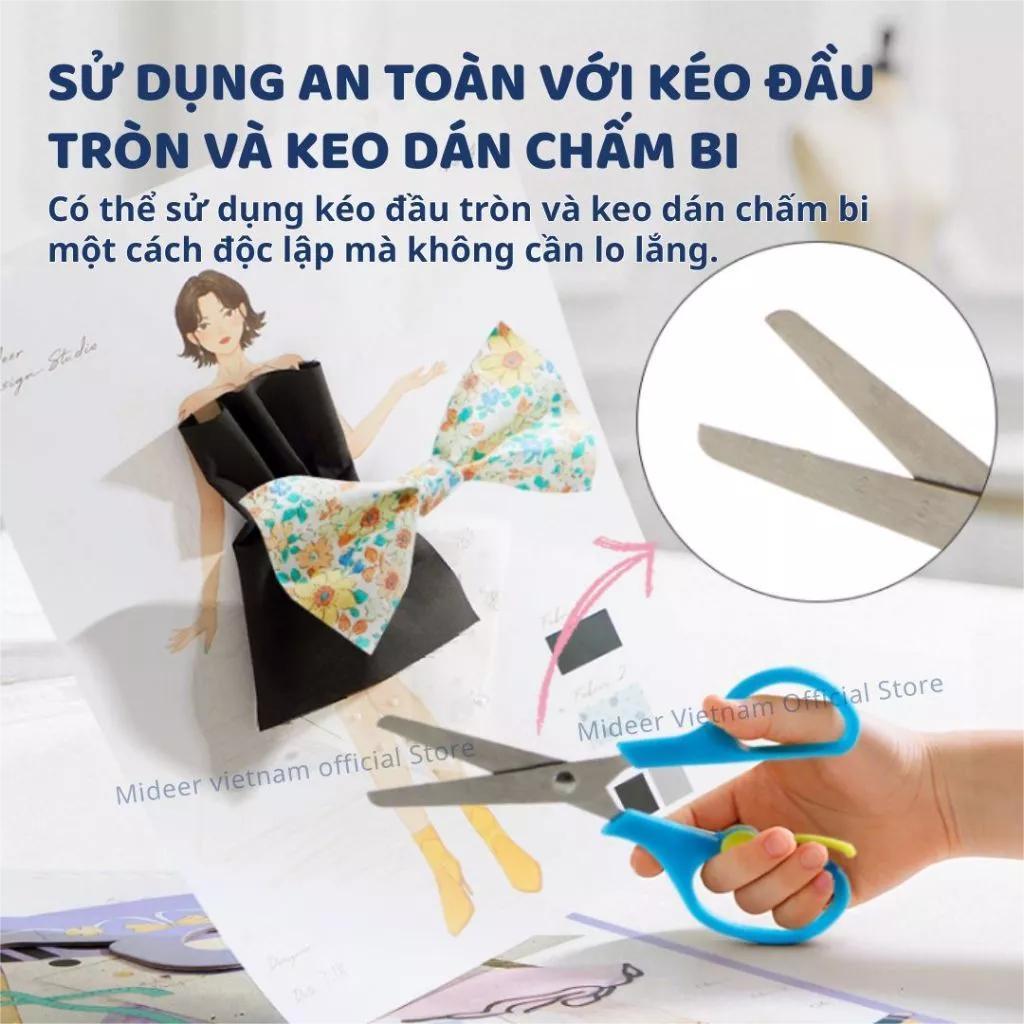 Có thể sử dụng kéo đầu tròn và keo dán chấm bi một cách độc lập mà không cần lo lắng.