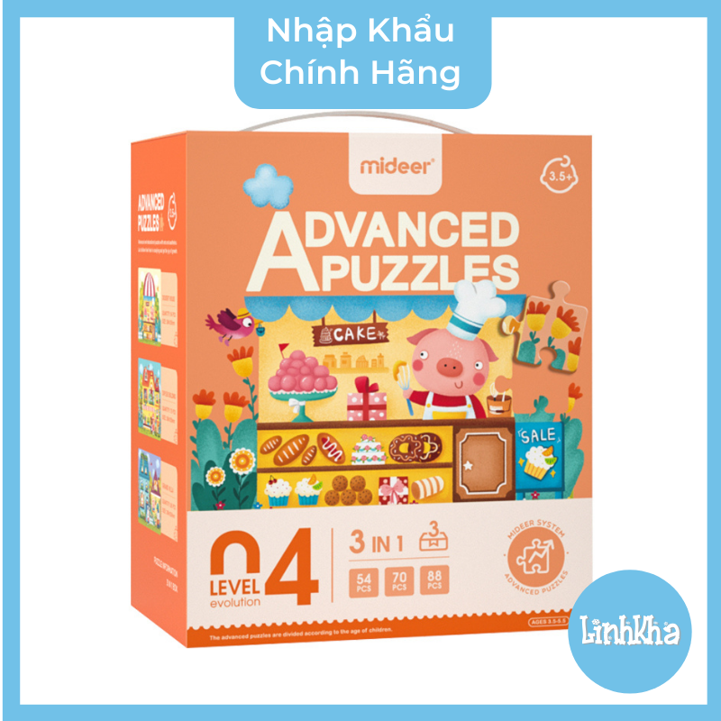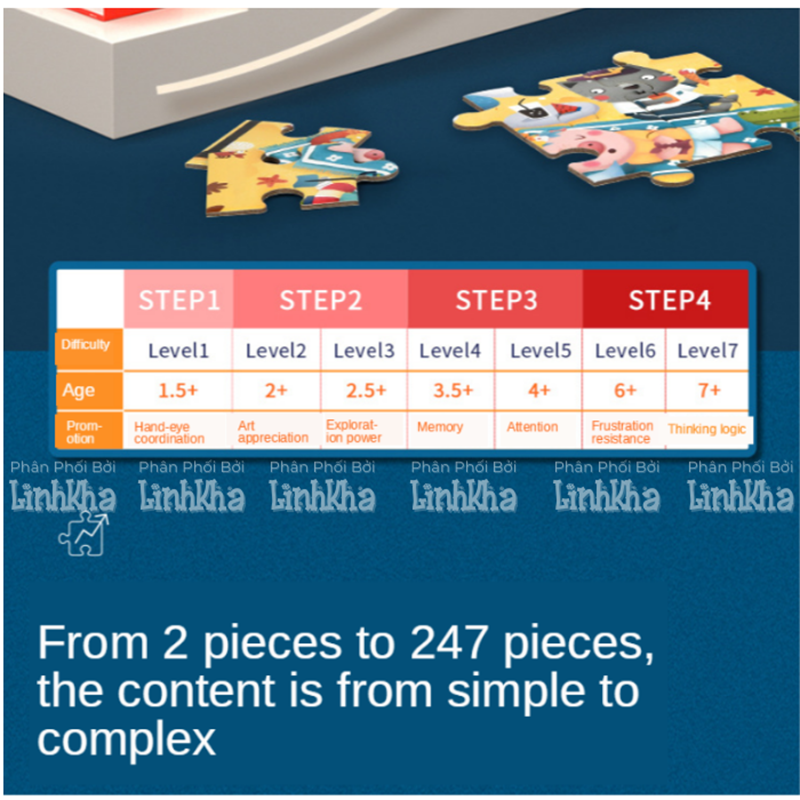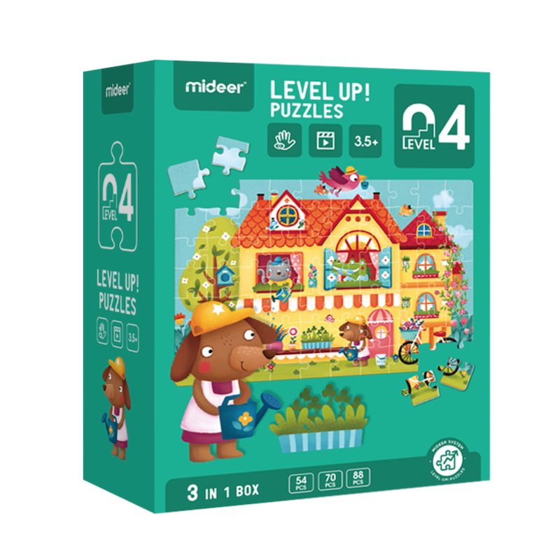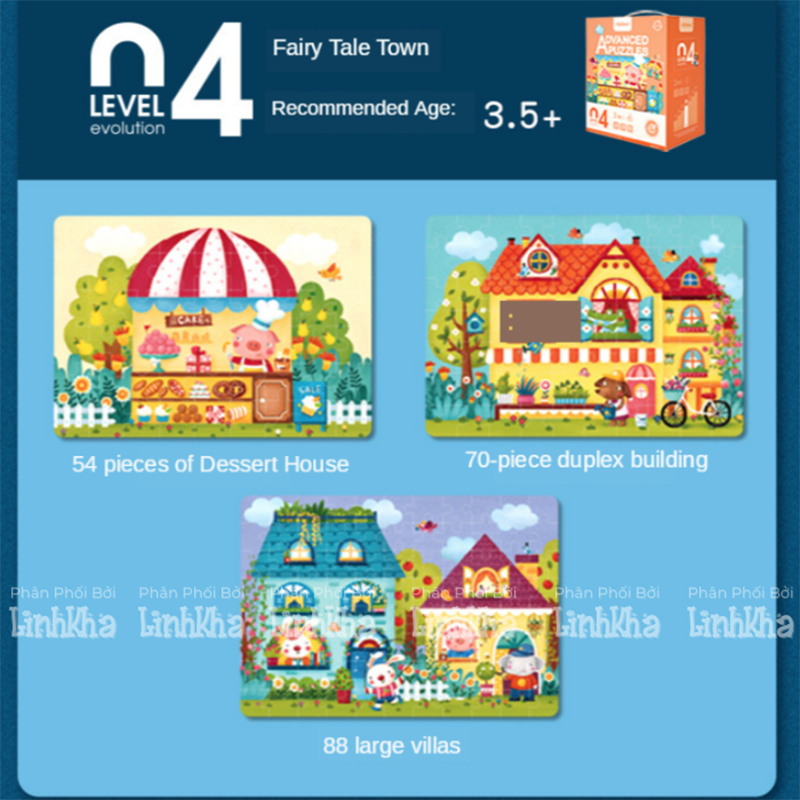 - Bộ xếp hình mức độ 4 nằm trong bộ 7 cấp độ cho bé, với mức độ phức tạp tăng dần. - Level 4 cho trẻ 3,5+: